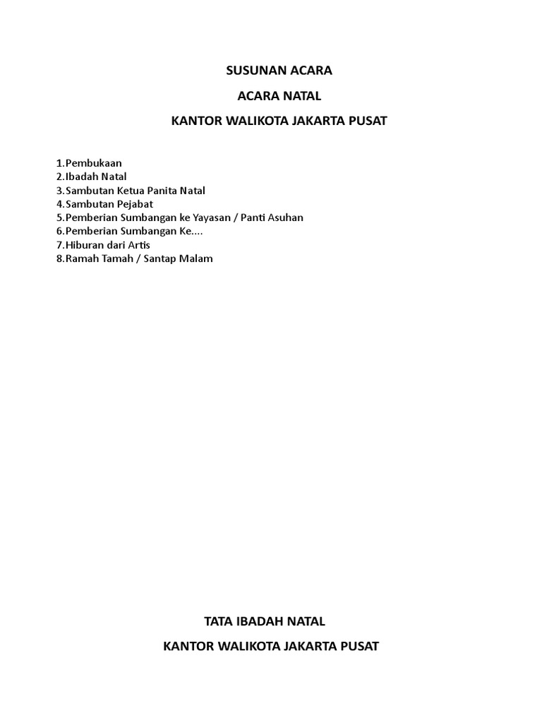 Susunan Acara Ibadah Dan Perayaan Natal 2018 from imgv2-1-f.scribdassets.com Lalu, bagaimana membuat makalah yang baik dan benar? Kenapa di setiap karya harus ada kata pengantarnya? Karya tulis yang dimaksud meliputi buku, makalah, esai, tesis, disertasi, surat kabar, tabloid, dll. Misi utama pengutusan nabi muhammad saw. Natal sangatlah berarti bagi kita sebagai umat kristen, apalagi kita sebagai umat yang telah. Sebagai contoh kata kata ucapan natal dan tahun baru : Sedang mencari contoh proposal kegiatan ibadah natal dan tahun baru di gereja? Budaya merupakan sesuatu yang tdak dapatdipisahkan dari kehidupan manusia, karena budaya merupakan produk dari manusia.